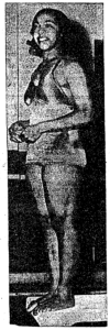 Jamaica, Long Island Golden Arrows featured star players Louise Woods, Shirley Farnum, and Ruby Perlotte. Ruby later played with the New York Cover Girls, a nationally touring mixed-race squad from the early 1950s that featured former actresses, models, and celebrities and “opposes male quintets only.” Ruby was “the team’s only Negro, who is billed as the female Goose Tatum,” wrote the Binghamton Press and Sun-Bulletin. According to the newspaper, that squad also included “Betty Sternkopf, about whom the only information given is that she is blond.”