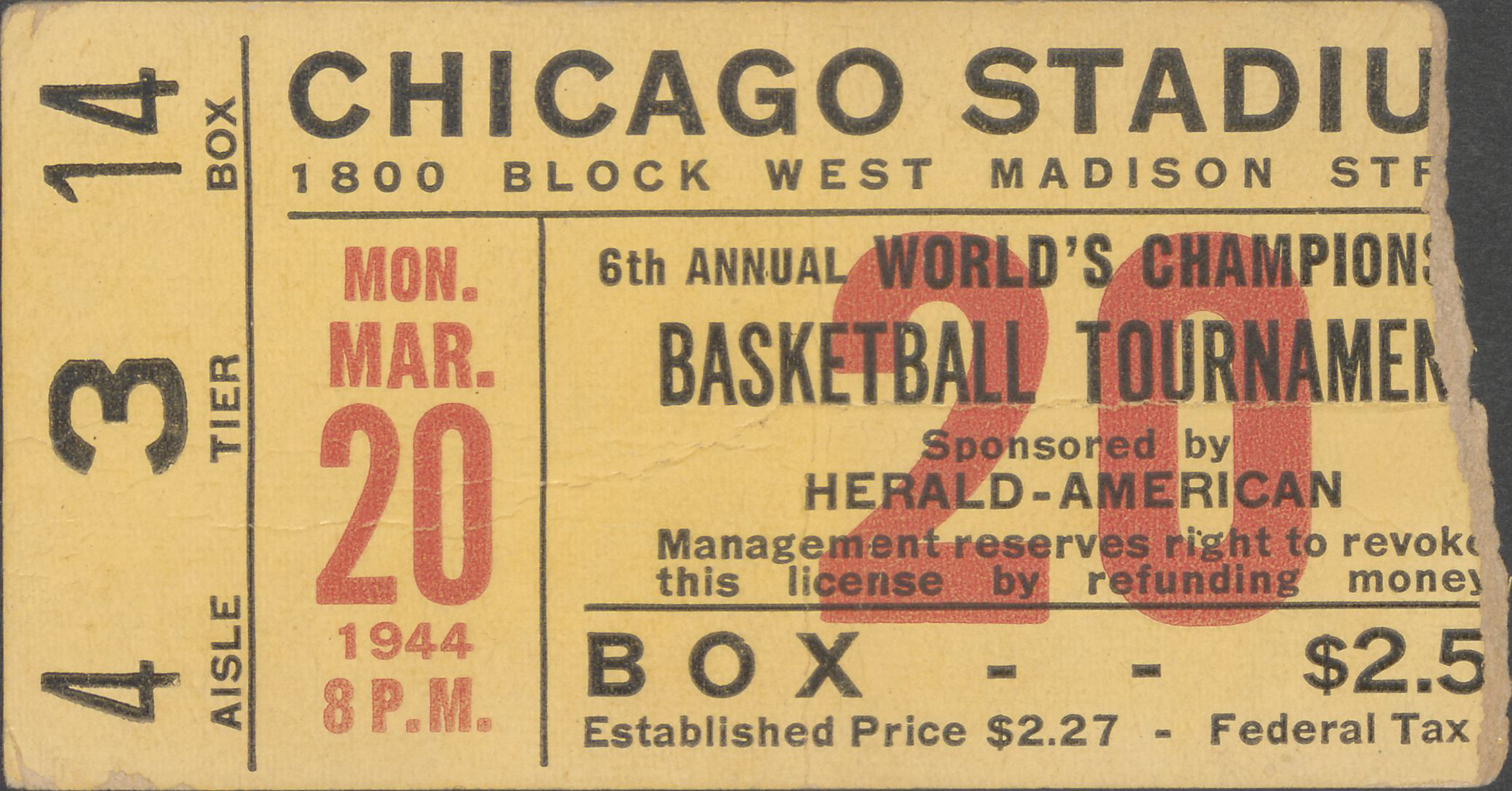 More ... A ticket fragment for a box seat at the 6th Annual World's Championship Basketball Tournament in 1944, held at Chicago Stadium.